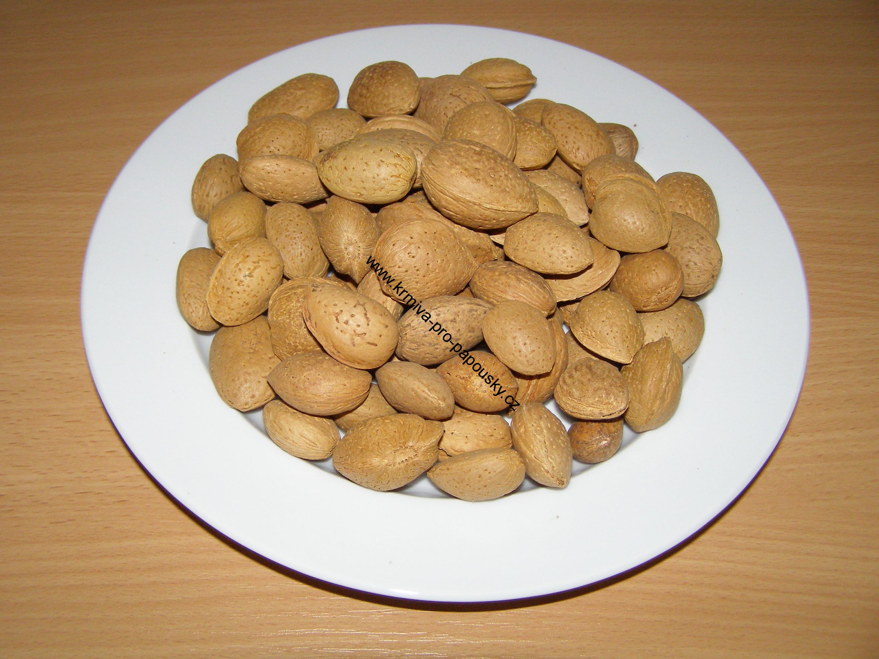 Skořápka mandle je velmi tvrdá, proto doporučujeme menším druhům papoušků skořápku narušit, aby se k samotnému jádru dostali.