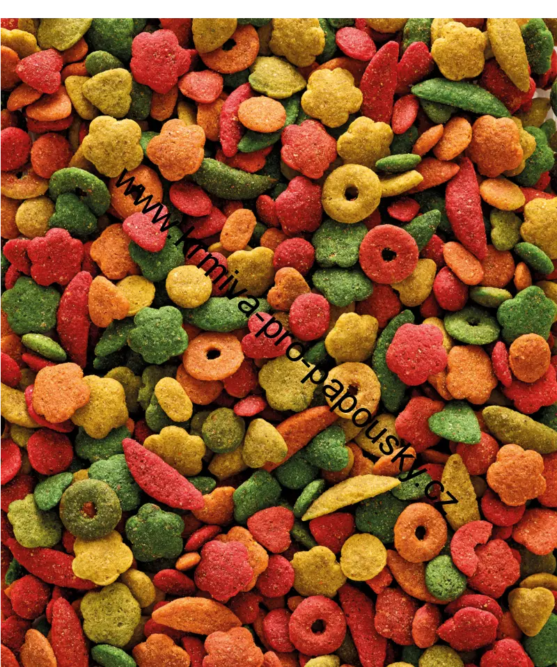 Pelety jsou s vědecky schváleným složením, založené na vybraných zrninách, čerstvém ovoci a burských oříšcích. Úplně stravitelné, beze ztrát.