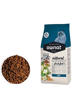 OWNAT CLASSIC CAT Fish kompletní krmivo pro každodenní výživu dospělých koček, které je bohaté na čerstvé ryby a přírodní ingredience. Toto prémiové krmivo obsahuje omega-3 a omega-6 mastné kyseliny, jež přispívají ke zdravé pokožce a lesklé, hedvábné srsti. Je vhodné pro kočky všech plemen a podporuje jejich celkové zdraví.